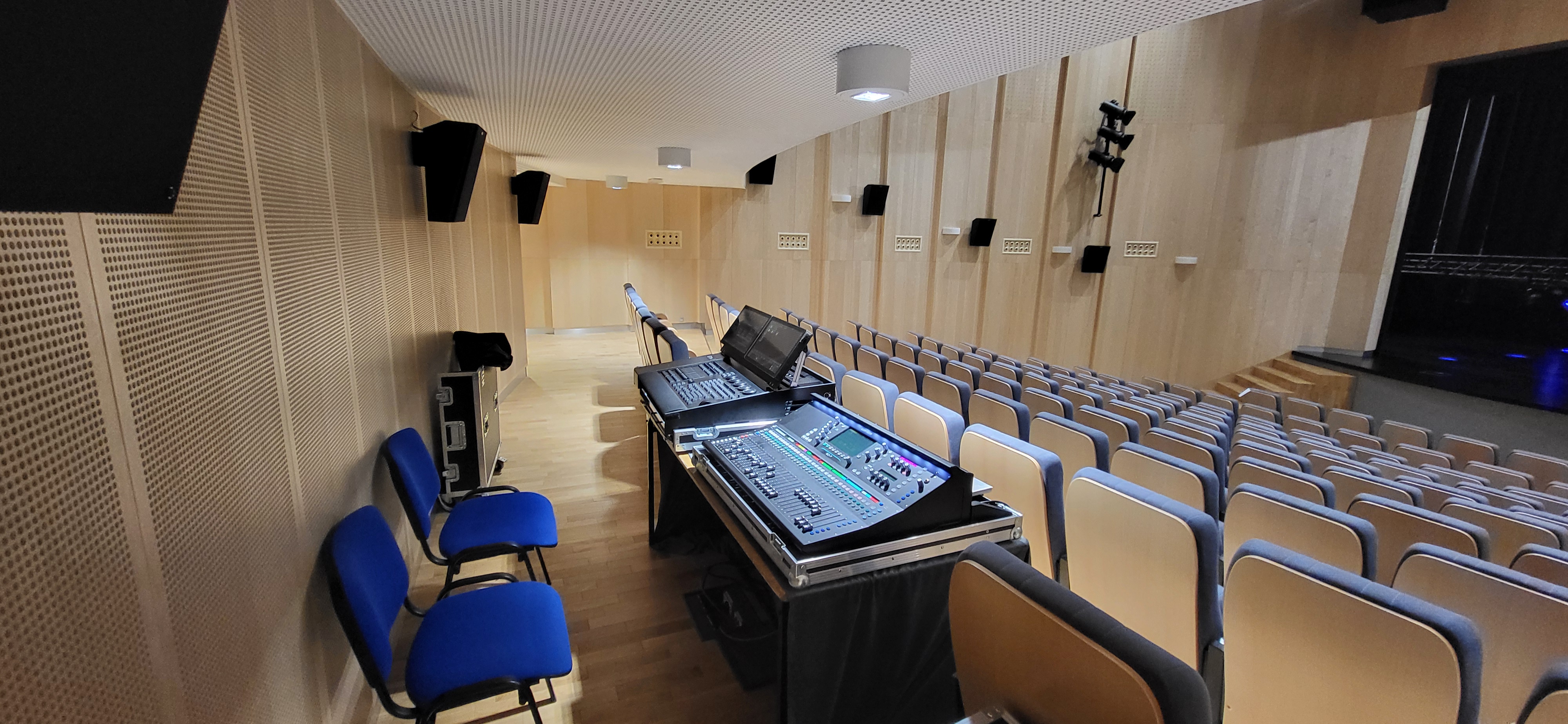 Dom Kultury w Myszkowie jest wyjątkowym dla nas obiektem: nasza firma zaprojektowała i wykonała pełny system audiowizualny, ale także była autorem projektu adaptacji akustycznej. Przebudowywana sala widowiskowa posiada teraz widownię na około 280 miejsc.
