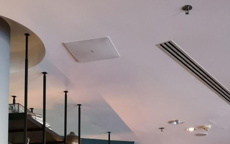 W 2007 roku wykonaliśmy kompleksowy system AV w hotelu. W 2019 roku nadszedł czas na modernizację systemu nagłośnienia. W restauracji Mavericks na parterze hotelu zainstalowaliśmy system nagłośnienia Bose oparty na specjalistycznych głośnikach EdgeMax. Technologia PhaseGuide pozwala na umieszczenie głośników po obwodzie pomieszczenia – dzięki opatentowanemu falowodowi wiązka jest tak kierowana, aby równomiernie nagłośnić całą powierzchnię pomieszczenia. Pozwoliło to Inwestorowi uniknąć kosztownych przeróbek sufitu.